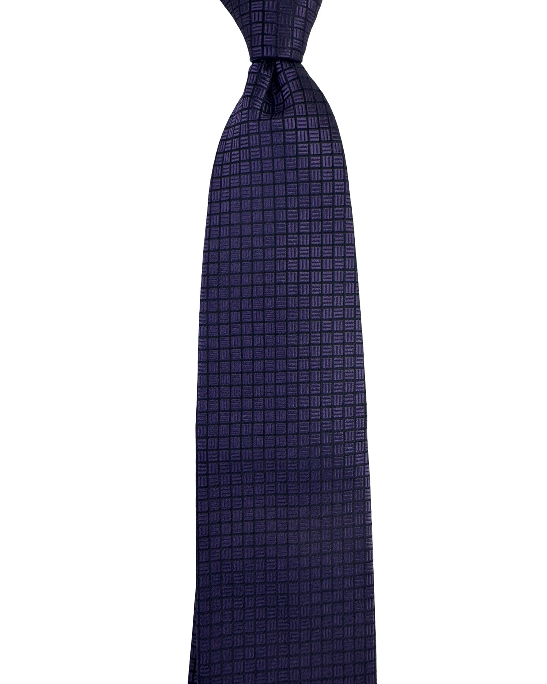 Men collection: Ermenegildo Zegna tie, purple base woven with a small repeating grid pattern in black tones, jacquard silk, hand made in Italy. Authentic Ermenegildo Zegna ties, designer men collection at outlet prices. Shop luxury novelty ties.