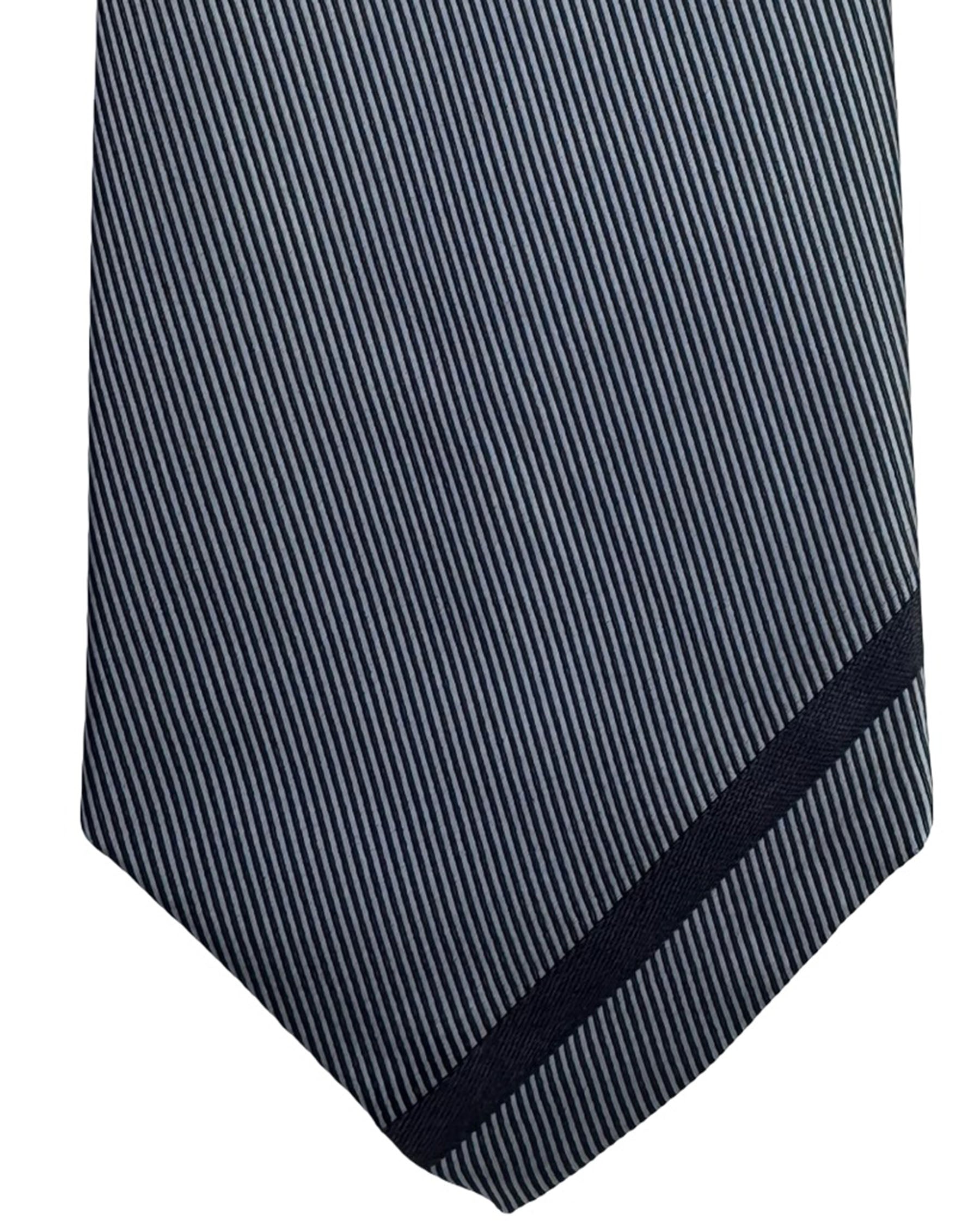 Gene Meyer Tie Charcoal Grey Blue Accent Block - Hand Made In Italy
