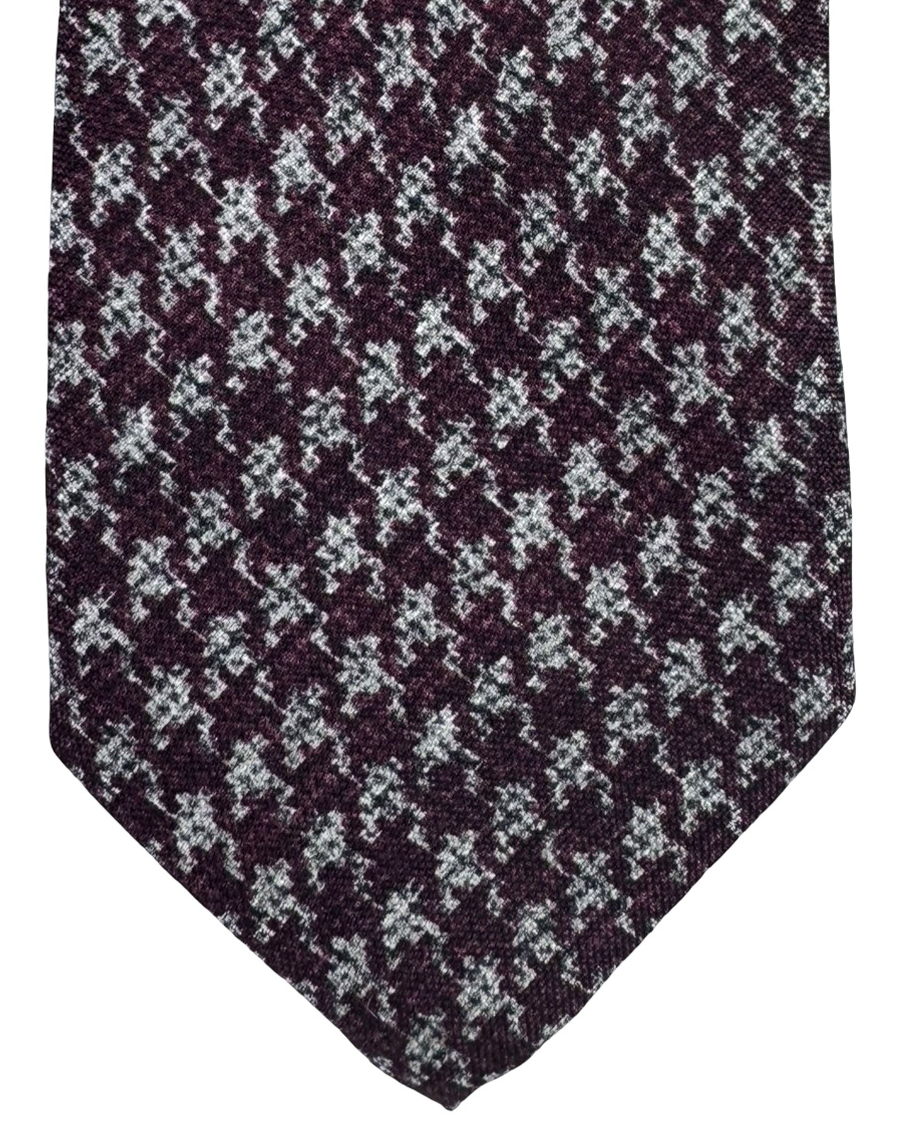 Genuine Canali tie, maroon grey houndstooth, jacquard silk, hand made in Italy. Authentic Canali men accessories, classic Italian, timeless elegance.