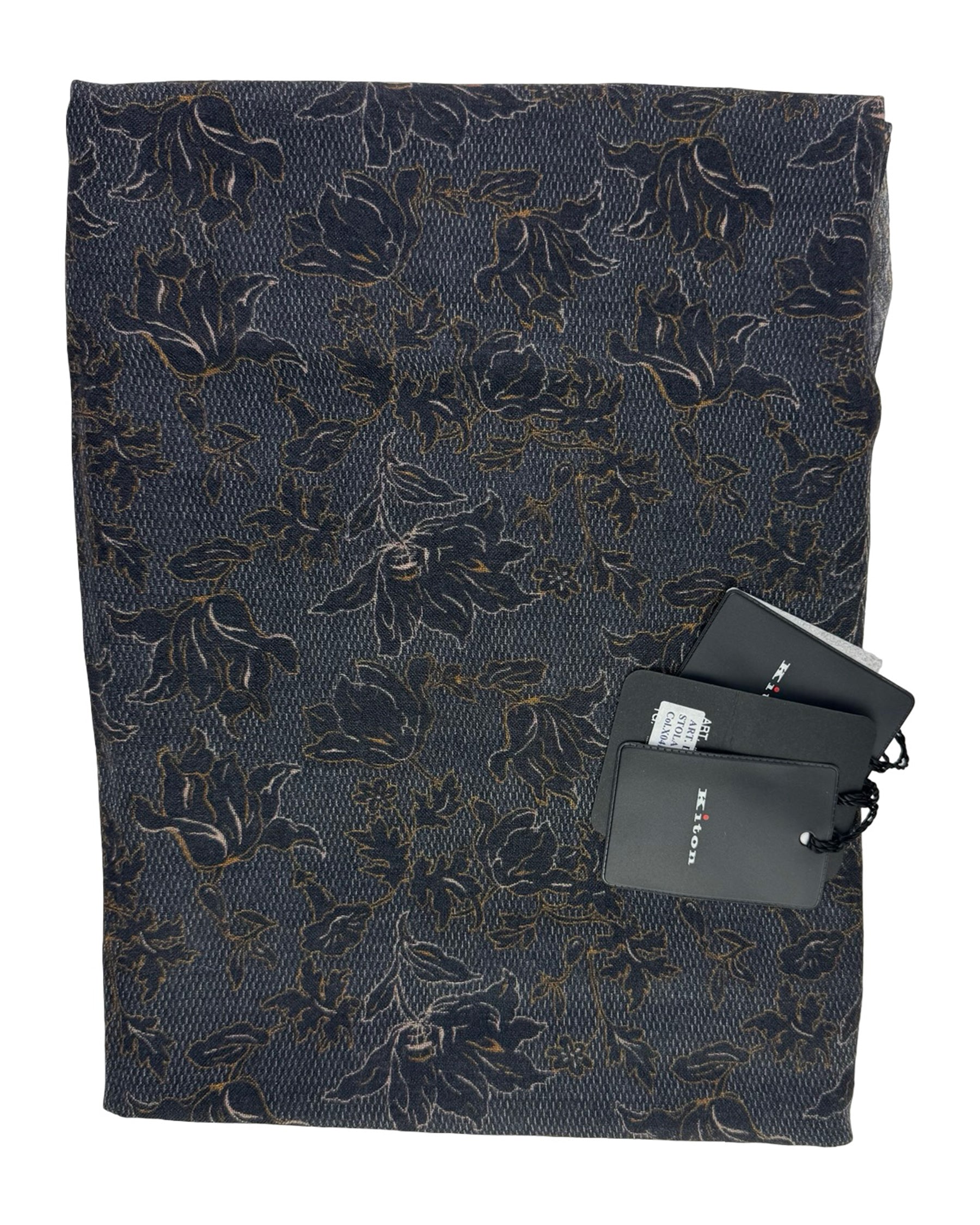 Kiton Cashmere Scarf Midnight Blue Brown Floral