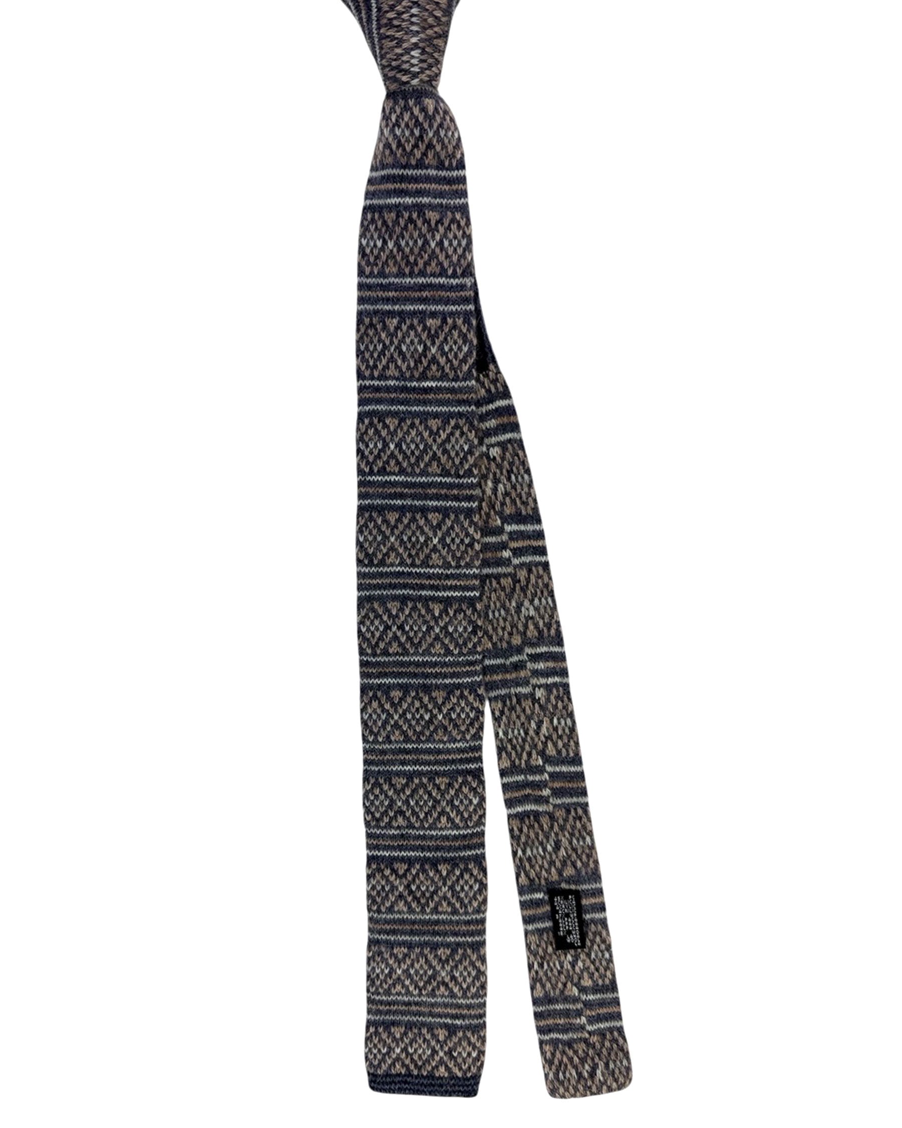 Fall/ winter collection: Authentic Kiton square end knitted tie, gray taupe design, wool alpaca blend, hand made in Italy. Genuine Kiton Napoli, men clothes/ accessories. Shop square end knitted ties.