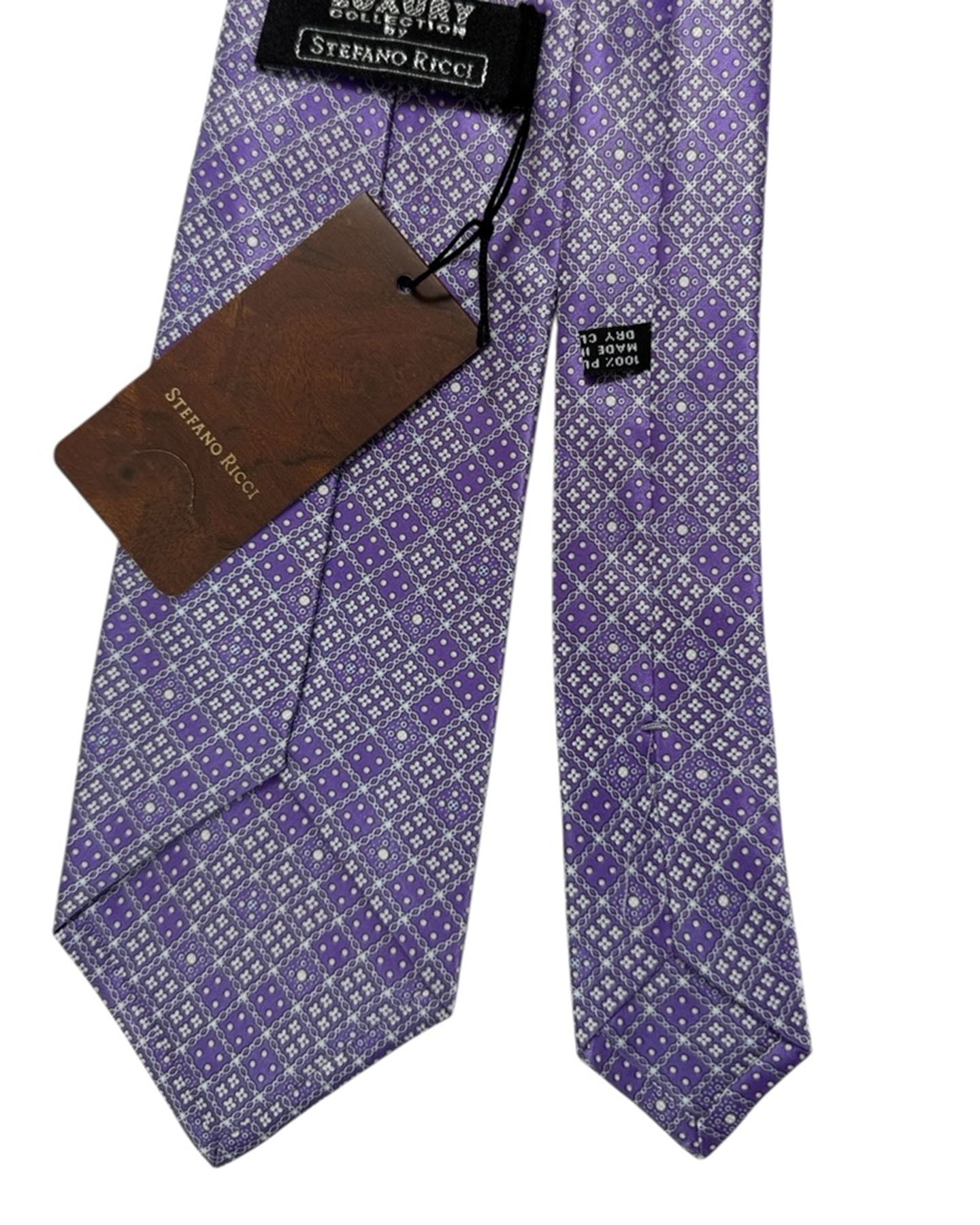 Luxury: Stefano Ricci tie, detailed purple and silver pattern, silk, Luxury Collection, hand made in Italy. Genuine Stefano Ricci ties at outlet prices. Luxury men ties and accessories.