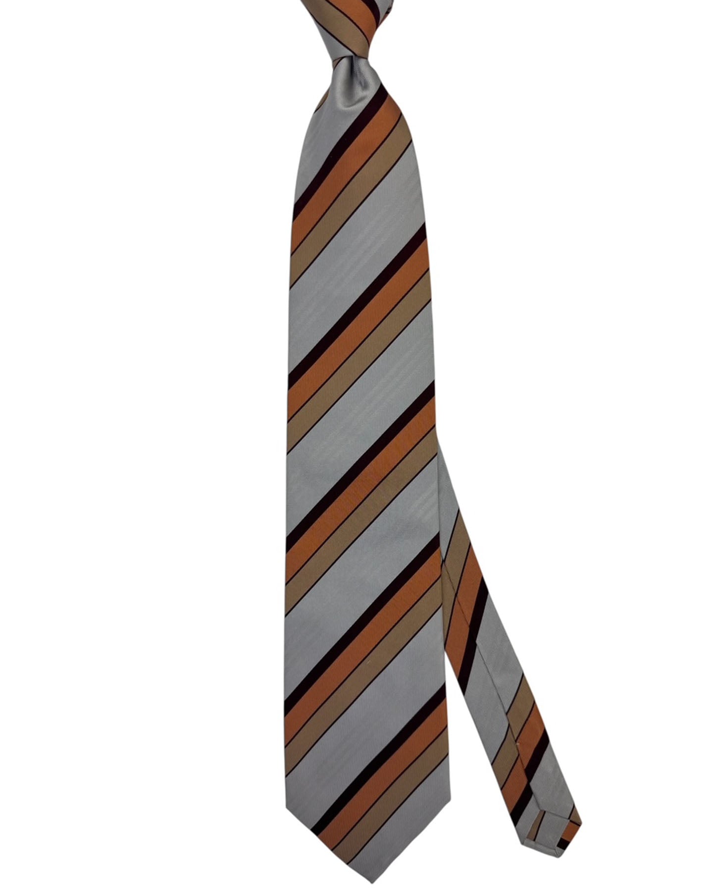 - FINAL SALE - Genuine Valextra tie, orange, burgundy silver stripes, wide 9.5cm width, jacquard silk, self tipped, high quality, hand made in Italy. Discount luxury designer ties, Valextra men fashion accessories at outlet prices.