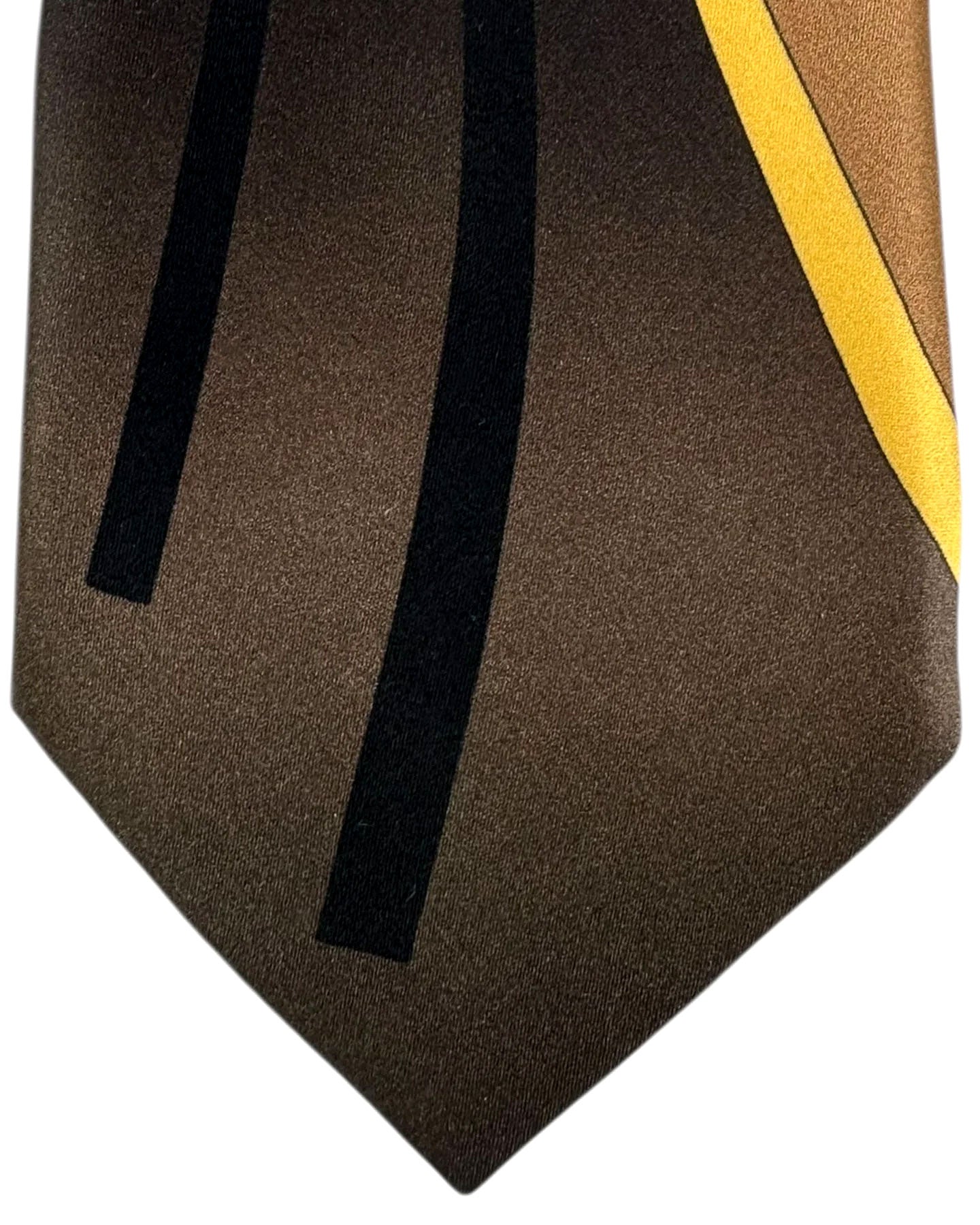 Authentic Vitaliano Pancaldi tie, brown swirls in gold, orange, and taupe creating a flowing, wave-like design, hand made in Italy. Genuine Vitaliano Pancaldi ties are luxury Italian designer neckties. Shop all Vitaliano ties.