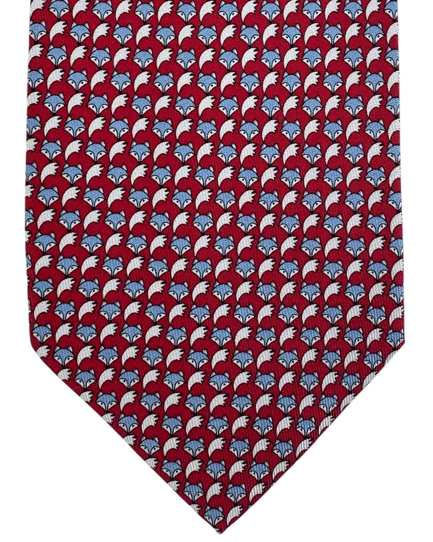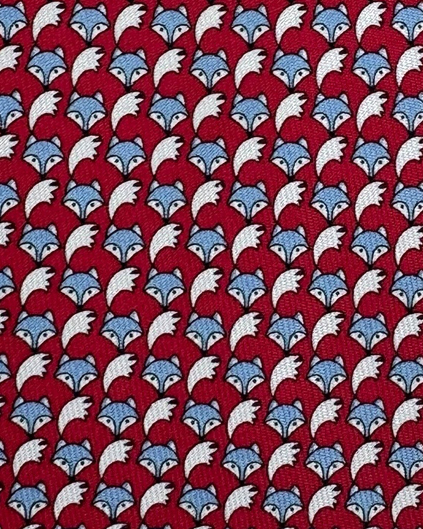 New Fall/ Winter 2025/ 2026 Collection: Authentic Salvatore Ferragamo tie, red fox with tail & Gancini design, printed silk, hand made in Italy. Genuine discount Ferragamo ties online, Ferragamo men collection at outlet prices. The most popular high-end novelty tie in the world.