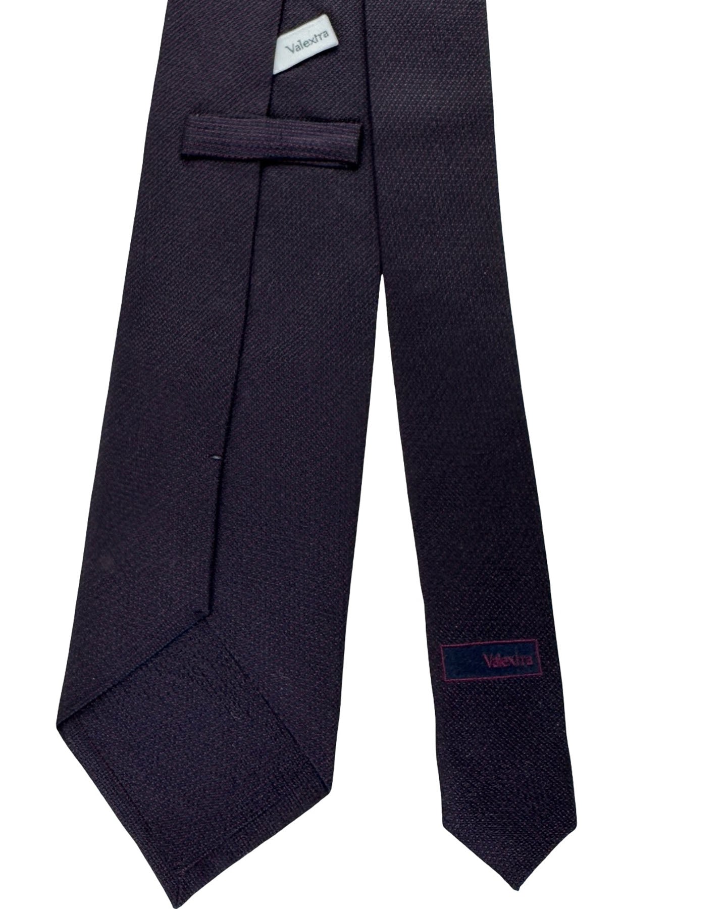 Genuine Valextra tie, black with dark bordeaux woven striped pattern, wide 9.5cm width, silk, self tipped, high quality, hand made in Italy. Discount luxury designer ties, Valextra men fashion accessories at outlet prices.