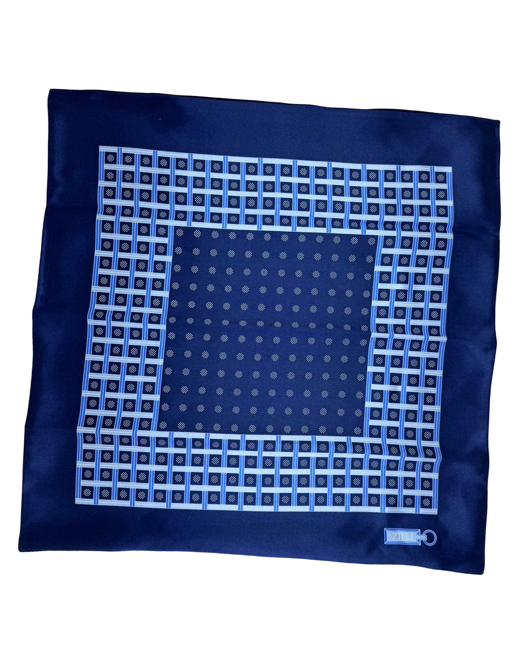 Zilli Silk Pocket Square Navy Design SALE