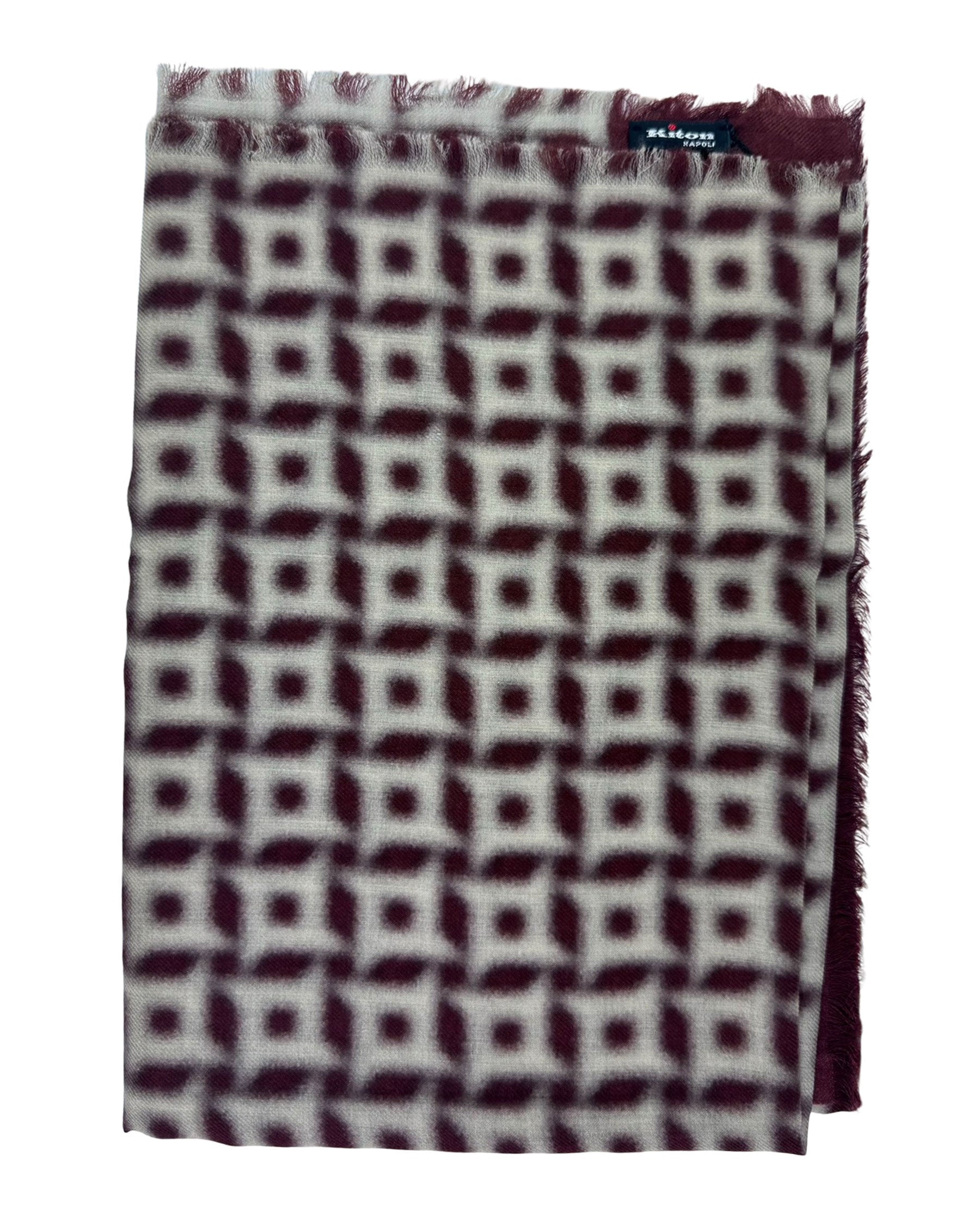 Men collection: Authentic Kiton scarf, bordeaux light gray (faded) houndstooth design, luxury light weight cashmere, short eyelash fringe, made in Italy. Luxury Kiton men collection scarves, wraps and shawls.