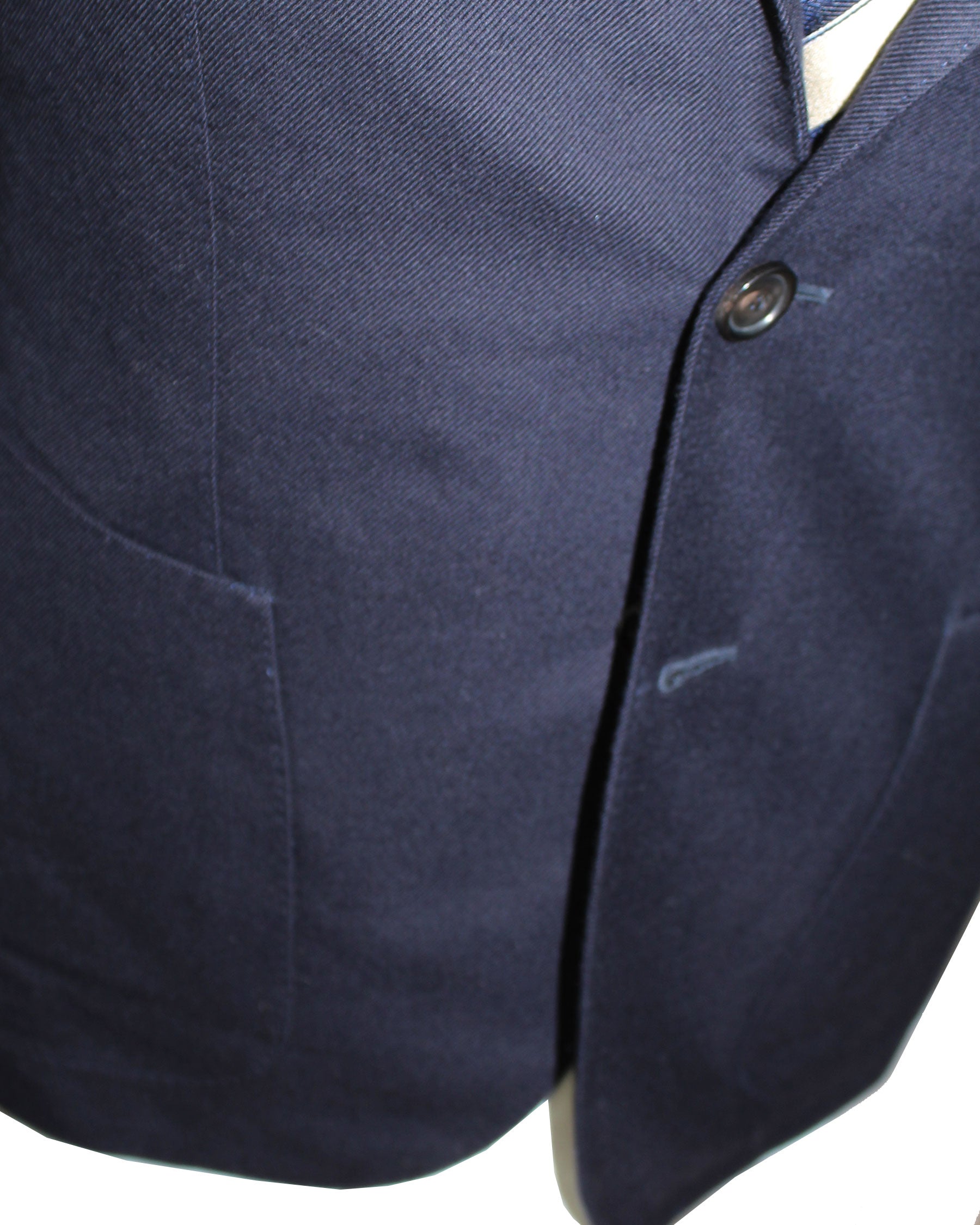 Genuine Luigi Borrelli sport coat, 2 button, notch lapel, dark navy, fancy lightweight wool, unlined jacket/ blazer, soft shoulders, hand made in Italy. Sartorial quality men suits by Luigi Borrelli, hand made in Italy.