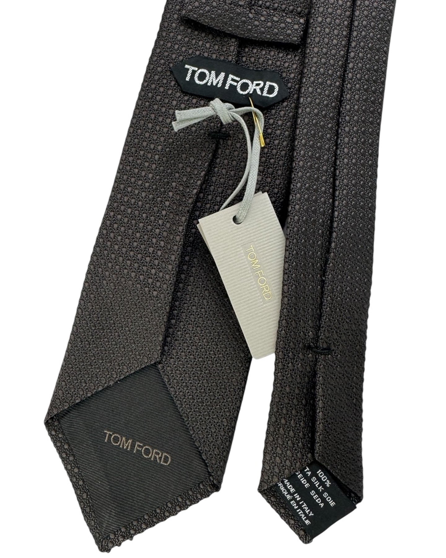 Authentic Tom Ford tie, tonal dark brown design, silk, hand made in Italy. Shop the genuine Tom Ford collection men's ties and dress shirts at outlet prices.