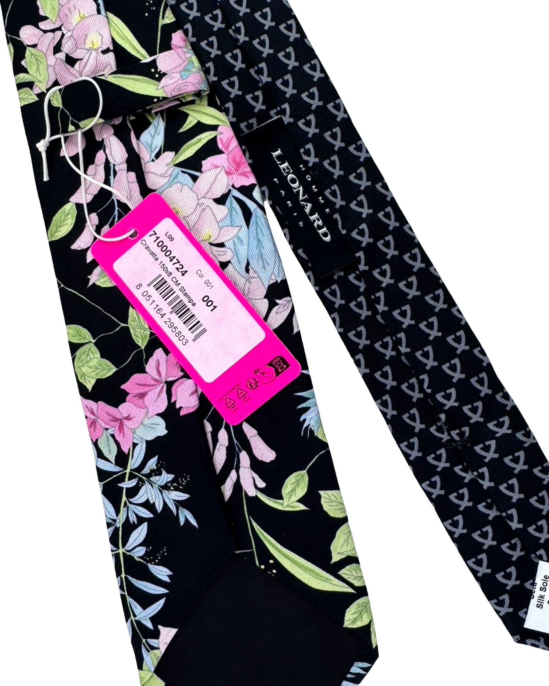 Leonard Paris Silk Tie Black Pink Floral