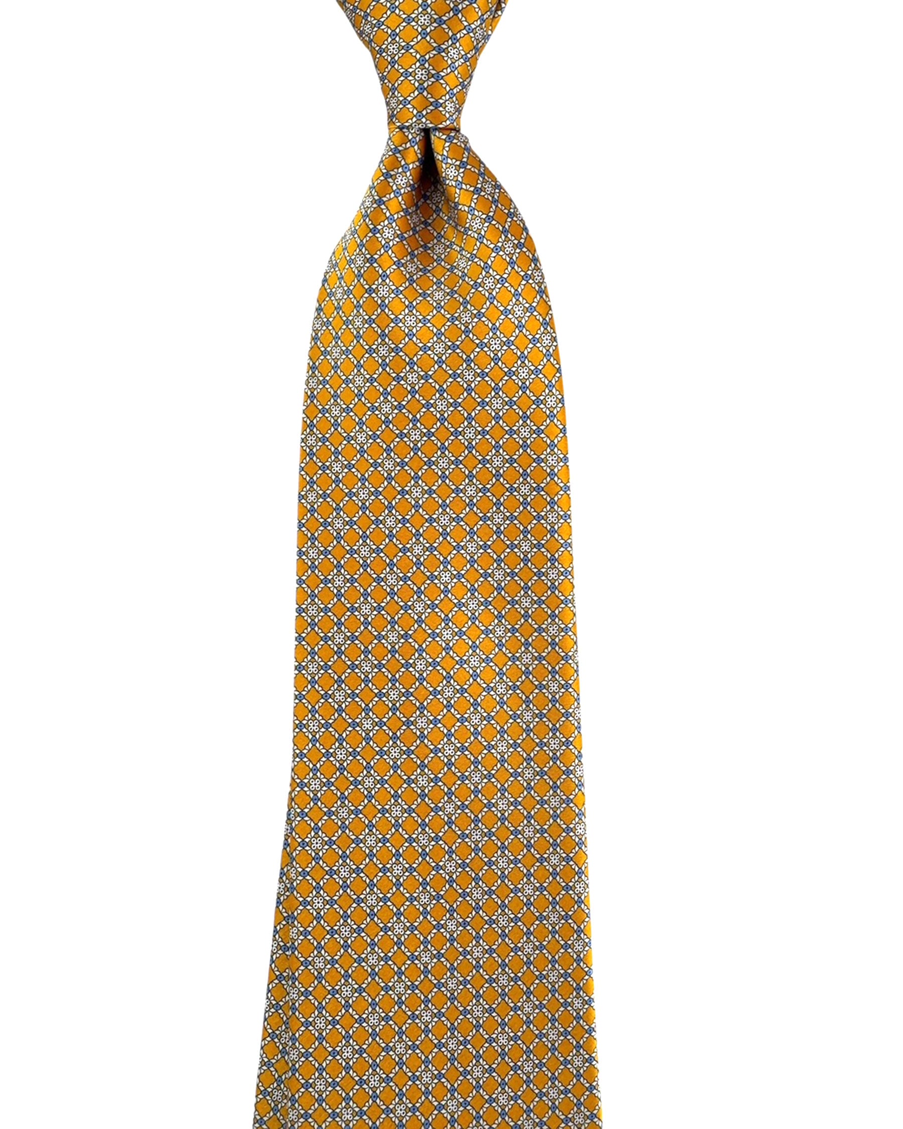 Authentic Stefano Ricci tie, orange geometric design, printed silk, hand made in Italy. Genuine Stefano Ricci ties at outlet prices. Luxury men designer ties and accessories.