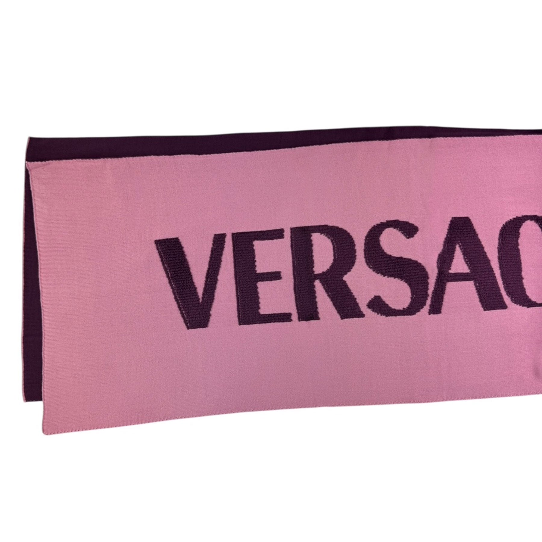 Unisex - Fall/ Winter 2025/ 2026 Collection - Genuine Versace scarf, pink with with embroidered purple logo 'Versace Jeans Couture', fall/ winter collection. Genuine Versace scarves.