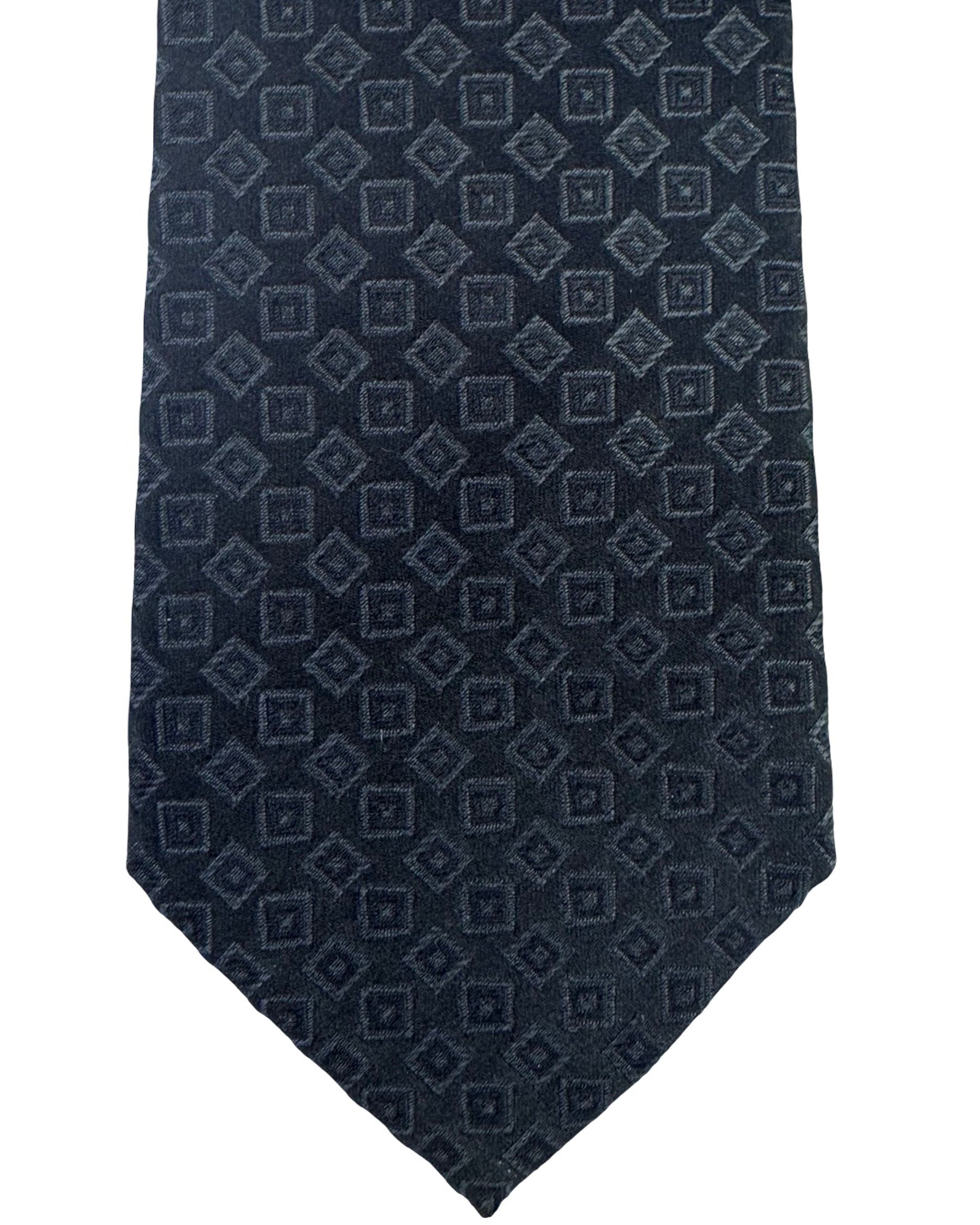 Genuine Emporio Armani tie, silk, black/ dark gray square motifs, jacquard silk, hand made in Italy. Luxury Italian fashion, Armani men collection online. Discount men designer ties.