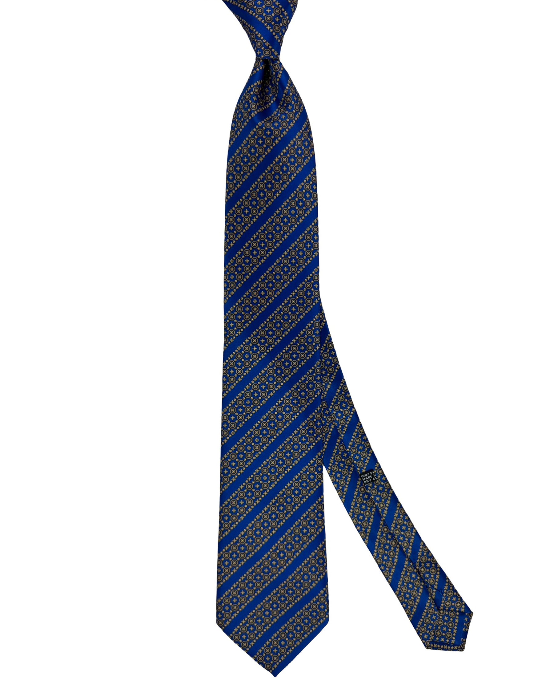 Authentic Stefano Ricci tie, royal blue gold stripes, printed silk, hand made in Italy. Genuine Stefano Ricci ties at outlet prices. Luxury men designer ties and accessories.